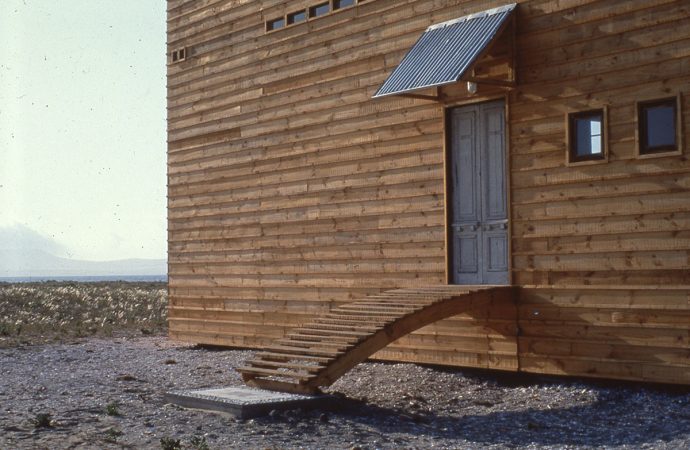 Situada casi al centro de la playa grande, a unos 12 kilómetros al sur de Tongoy, este paralelepípedo de 6 metros de ancho por 12 de largo y 6 de altura fue diseñado y construido en 1991 como casa de veraneo con un presupuesto de apenas ocho millones de pesos. En aquel entonces, no había caminos para llegar y uno tenía que manejar con mucho cuidado por el borde de playa, entre el mar y la arena seca, para no quedarse enterrado. Hoy cuenta con un precario camino.
