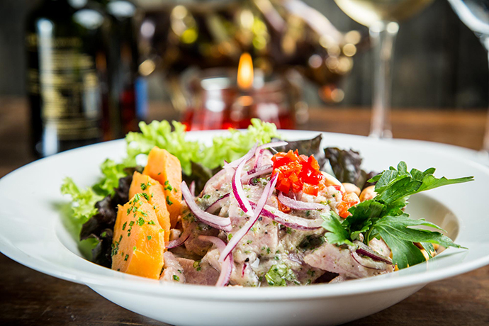 –La carta tiene una tendencia bastante inclinada hacia la comida peruana. Respeté la carta que tenía Sergio, que es muy buena, por eso todavía hay platos emblemáticos que se ofrecen hasta el día de hoy, como las empanadas de masa filo rellenas con mozzarella, tomate y albahaca; la plateada reducida en vino tinto y champiñón a fuego lento, y las papas bravas. Luego, en el camino, intervine yo y han entrado cebiches, tiraditos, causa limeña y he ido tomando cosas de la comida española que me gustan mucho, sobre todo sus picoteos como las croquetas de jamón, de espinaca y la tortilla de papas. De Argentina rescaté una milanesa exquisita con spaghetti al pesto.
