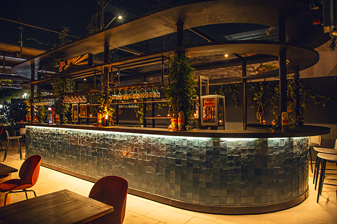 Dentro de este bar se respira un ambiente muy entretenido. Ecléctico, relajado, súper ondero, con excelente música y gente pasándolo muy bien. Su ambientación, a cargo de la oficina de interiorismo Grisanti & Cussen, es realmente perfecta. Su diseño habla de un estilo atemporal, inspirado en el circuito de los bares de las grandes metrópolis, pues uno perfectamente podría sentir que está en Nueva York o en Buenos Aires. Sobresalen los tonos rojos, con una iluminación más bien tenue, y las mesas y barras están dispuestas de forma tal que todos pueden ver lo que está sucediendo a su alrededor. Afuera, las terrazas, que simulan un gran jardín lleno de vegetación, diseñadas por Proyecto Selva, contienen este espacio urbano súper estiloso. Su propuesta está basada en el concepto de un bar-restaurante relajado, con una gastronomía sibarita de la mano de una barra con una gran coctelería. ¿De qué hablamos? Del nuevo local de El Toro. Un imperdible hoy en Vitacura que nació pese al estallido social y la pandemia. Doble mérito entonces para destacarlo en estas páginas e invitar a visitarlo.